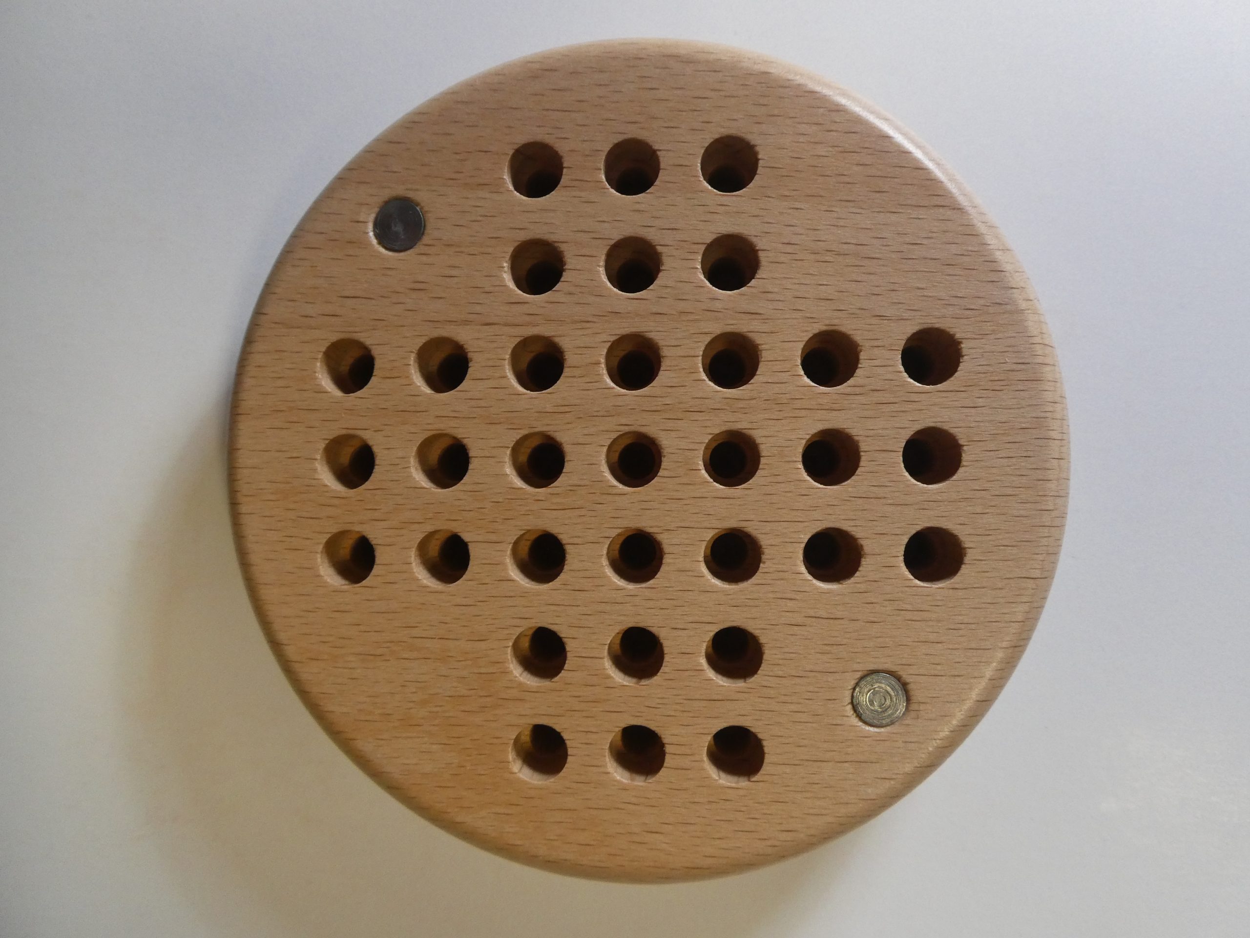 habe Gestern mein Solitaire erhalten und wollte mich kurz melden. Dass man die übersprungene pegs gleich wieder in die Löcher stecken kann ist super. Auch qualitativ fühlt sich das Spiel gut an.